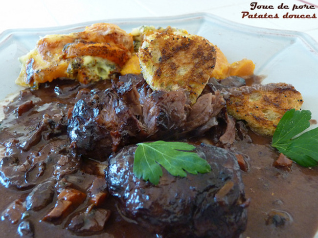 Joues De Porc Confites Au Vin Rouge Et Gratin De Patates Douces A